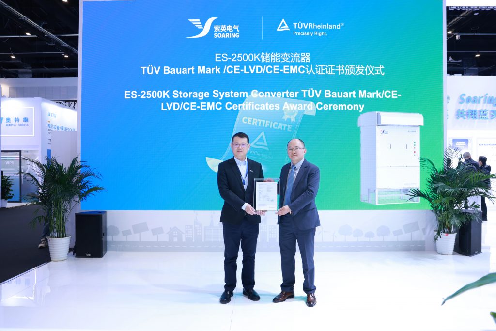 · 4月1日,索英電氣ES?2500K儲能變流器獲德國萊茵TüV認證證書