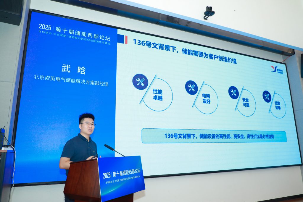 論壇期間,儲能技術成為關注焦點。在儲能分論壇上,索英電氣解決方案工程師楊庚杰發表主題演講,重點介紹了公司自主研發的大容量液冷儲能變流器(PCS)及構網型儲能技術。他指出,隨著新能源裝機容量不斷增加,目前新型電力系統“雙高”特征日益顯著,電力系統穩定性面臨巨大挑戰,構網型儲能是新型電力系統安全穩定的關鍵支撐。索英電氣專注于規模化儲能PCS電氣系統,自主研發生產的構網型儲能變流器具備短時三倍高過載能力,設備轉換效率、響應時間等核心性能參數持續行業領先水平,通過構網控制技術可自主為電網提供電壓與頻率支撐、穩定系統電壓,相關技術已在新疆、西藏等地百兆瓦級儲能項目成功應用,為新型電力系統構建提供了關鍵支撐。