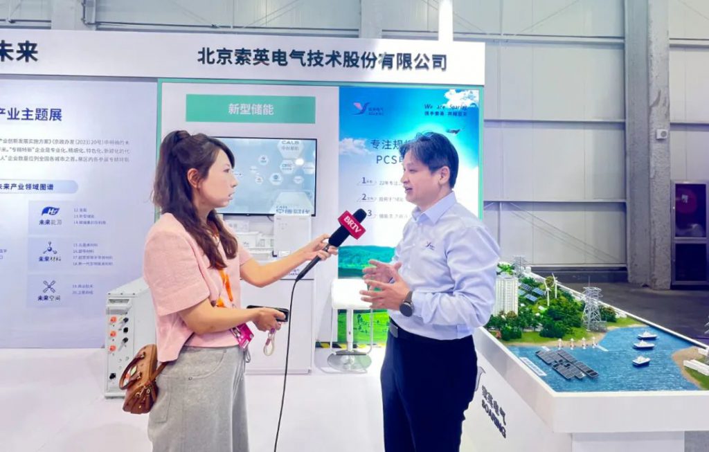 索英電氣的愿景是成為最具價值的清潔能源和節能技術引領者,積累了二十余年的技術、產品和服務優勢,儲能雙向變流連續四年行業出貨量前三,是新型儲能領域“新質生產力”的代表。在接受北京電視臺記者采訪過程中,索英電氣董事長兼總經理王仕城重點介紹了ES-5000K液冷儲能雙向變流器,該產品的效率、轉換速度等關鍵指標在同行產品中擁有核心競爭優勢,并兼具規模化構網儲能的功能,為電網穩定、安全運行提供重要支撐。